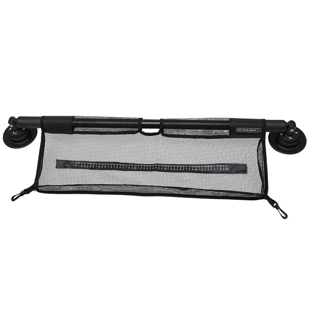 Die Savage Gear Belly Boat Gated Front Bar with Net ist eine extrem praktische Front-Stange. Diese kann dank der variablen Länge von 85 bis 95 cm an nahezu jedem Belly Boot verwendet werden. Dazu werden die beiden Adapter mit Hilfe von Klebepads am Belly Boot befestigt. Das ergibt eine sehr flexible Verbindung, welche ein Abnehmen der Front-Stange, aber auch ein nach oben oder unten schwenken und bis zu 360 Grad drehen zulässt. An der Front-Stange ist ein gummiertes Netz befestigt, welches mit Hilfe der mitgelieferten D-Ring-Pads am Belly Boot fixiert werden kann. So ergibt sich eine Netz-Ablagefläche für Utensilien, zum Abhaken und sogar Messen von Fischen. Auf dem Netz ist eine Scale von 50 cm Länge aufgedruckt. Praktisch, um gerade Barsche schnell zu messen. Ein rundum gelungenes Zubehör, an dem jeder Belly Boot Angler gefallen finden wird.