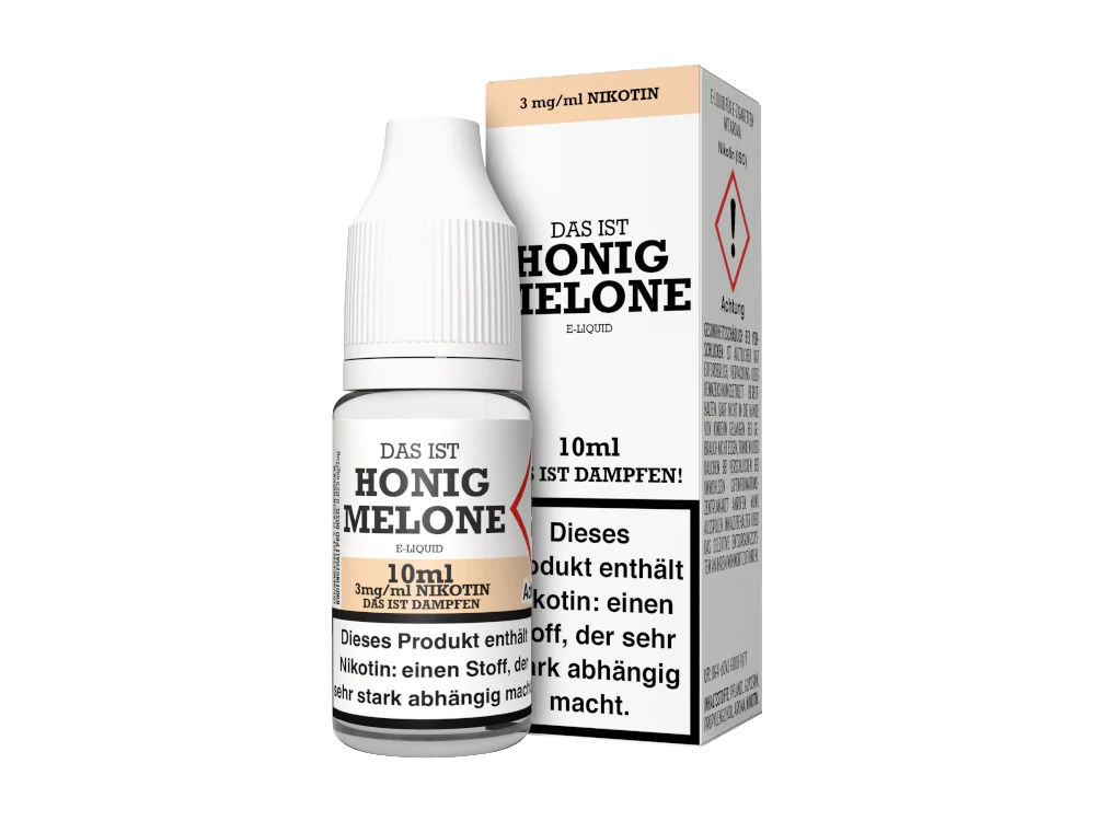 Das Honigmelone e-Liquid ist ein Liquid der Marke Das ist Dampfen. In Kombination mit Ihrer E-Zigarette schmeckt das Liquid nach Honigmelone. Das Liquid befindet sich mit 10 ml vorgefüllt in einer 10 ml Liquidflasche. Das Liquid können Sie in den drei Nikotinstärken 3 mg/ml, 6 mg/ml und 12 mg/ml erwerben. Es steht aber auch eine nikotinfreie Variante zur Wahl.