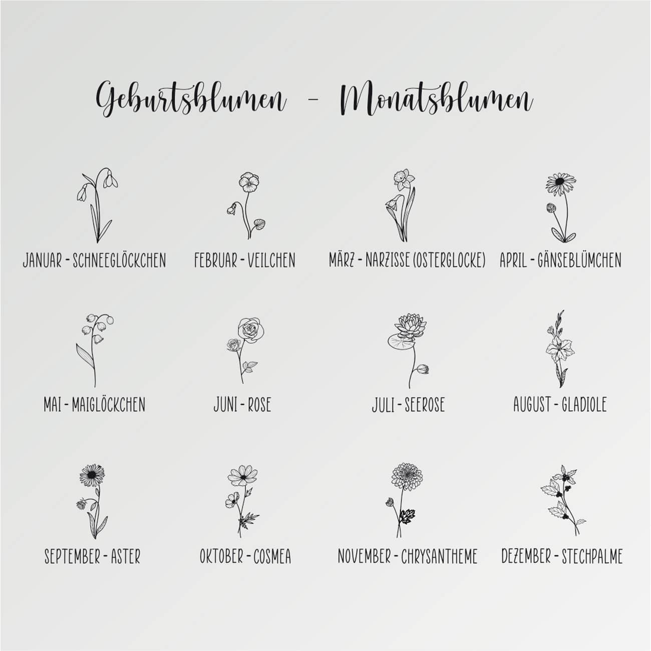 Mit Blume für jeden Monat des Jahres