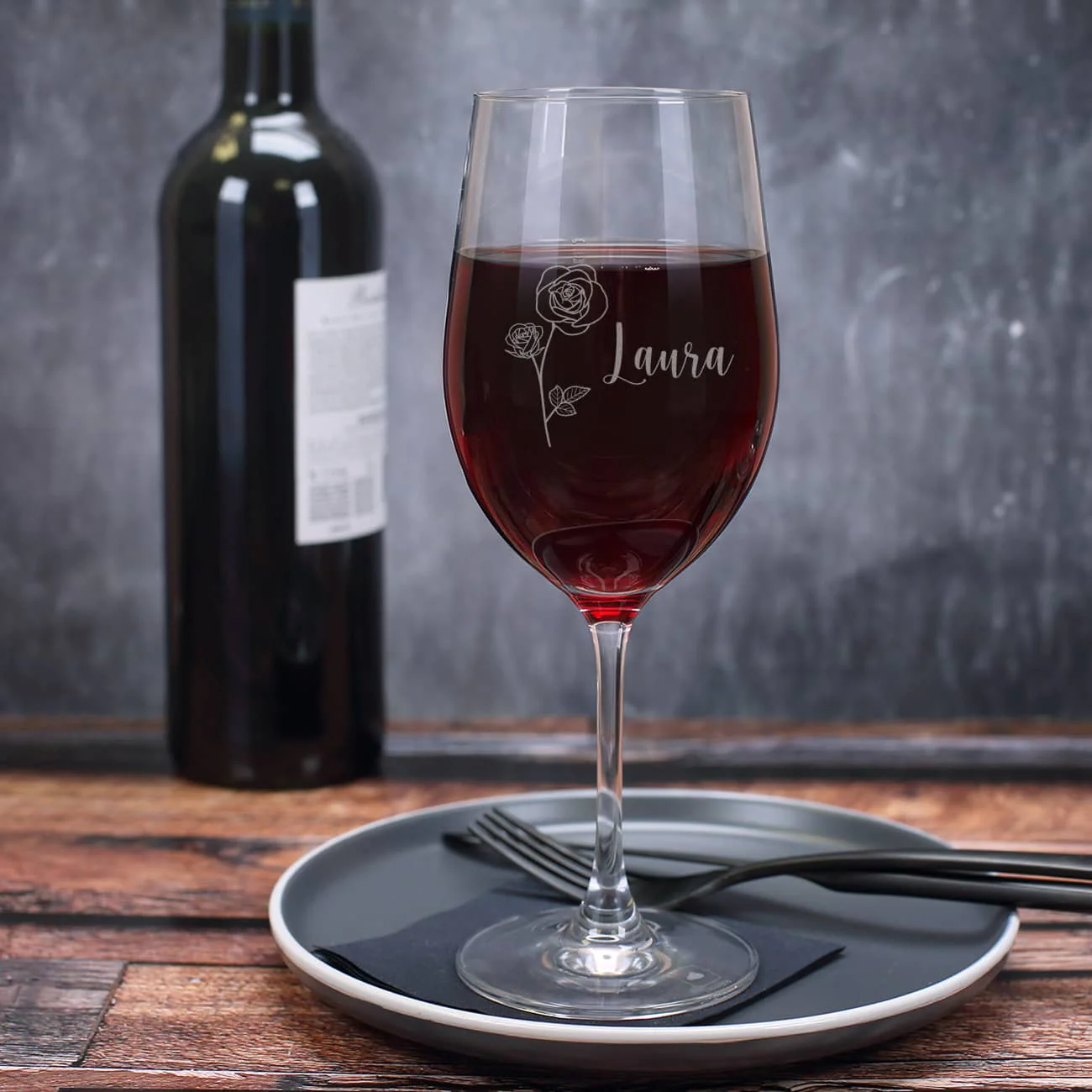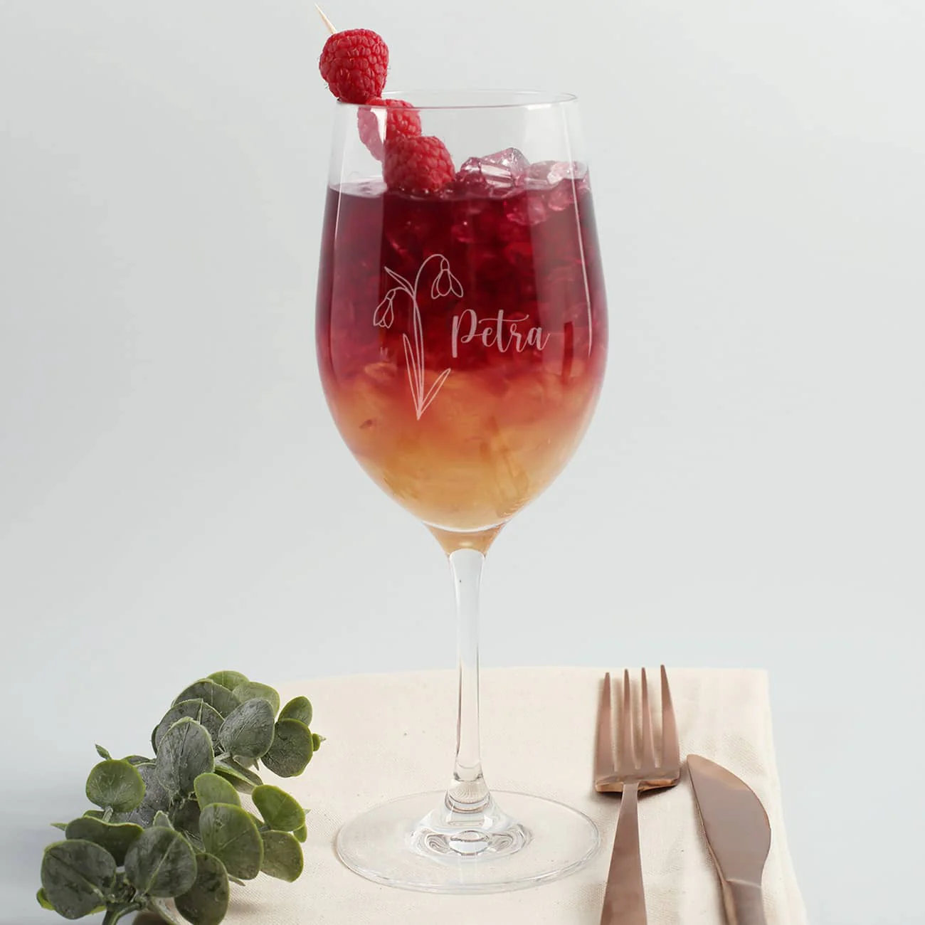 Weinglas graviert mit Monatsblume & Name
