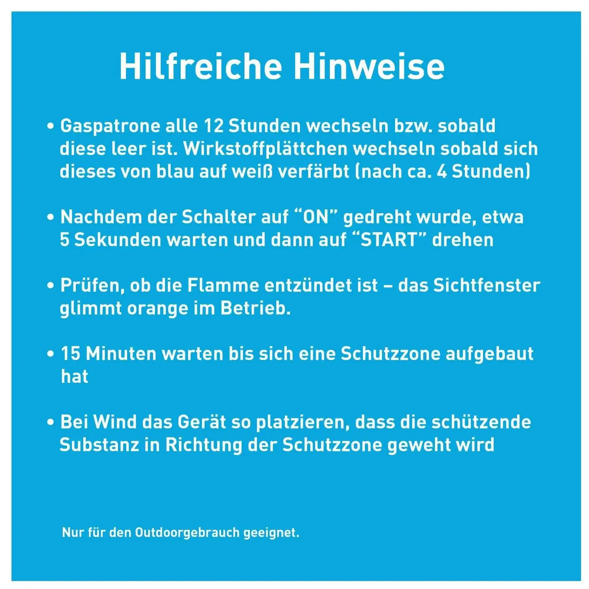 Eine Erstausstattung an Verbrauchsmaterial (Butangaspatrone und 3 Wirkstoffplättchen) für 12 Einsatzstunden gehört zum Lieferumfang.