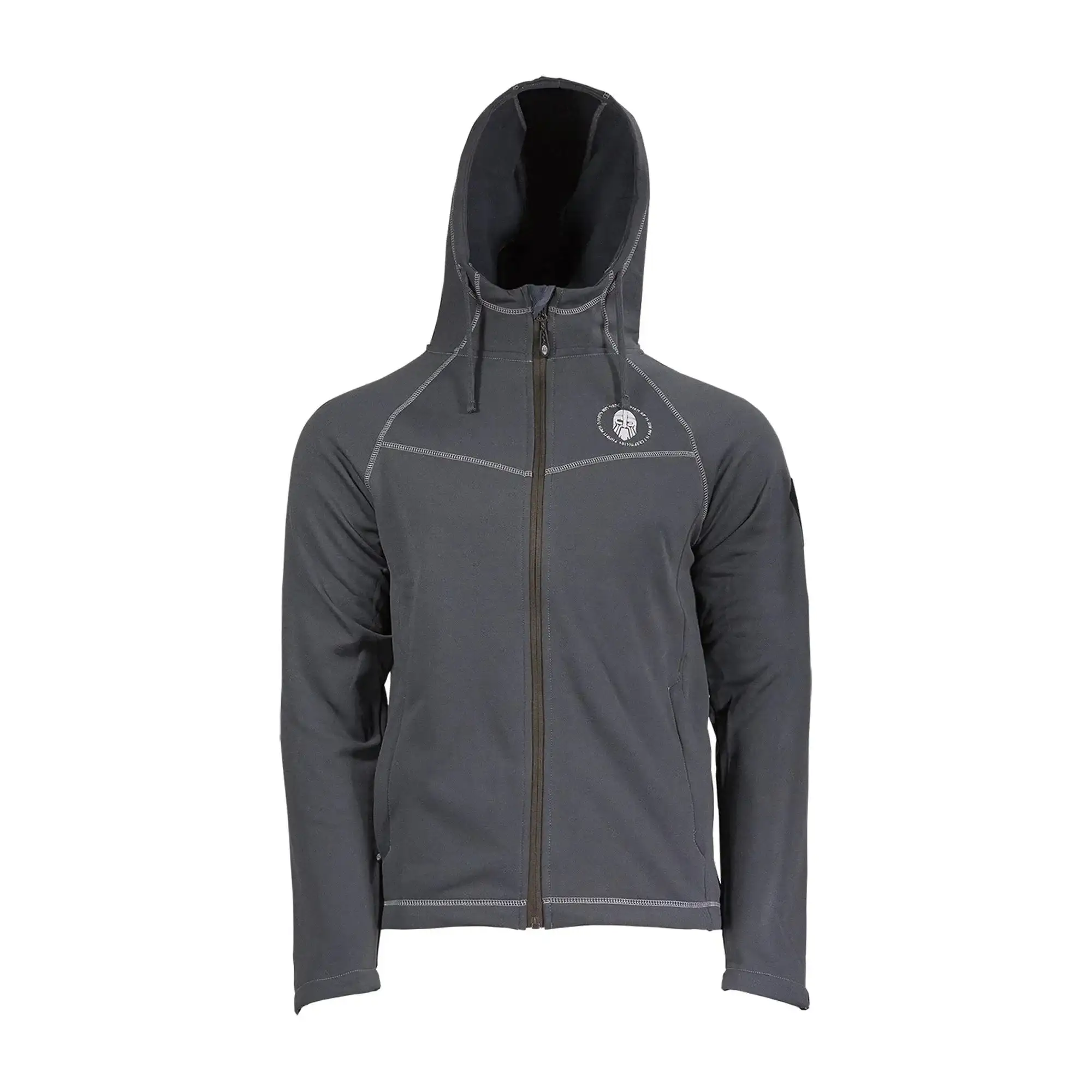 Der Ragnar Raids Kapuzenpullover Einar Hoodie ist auf den ersten Blick ein stylisches Oberteil. Er bringt allerdings auch versteckte Überraschungen mit sich. Eines davon ist der integrierte Halswärmer, den Du in Kombination mit der Kapuze auch als Gesichtsschutz verwenden kannst. Eingearbeitet in der Kapuze und im Nacken versteckt, hast Du diese Option immer dabei. Die Pulswärmer befinden sich ebenfalls verdeckt im Ärmel und haben eine Aussparung für Deine Armbanduhr. So bist du gewärmt, hast aber immer die Uhrzeit im Blick. Innenliegende Fächer ermöglichen Dir den Zugriff auf Smartphone oder Funkgeräte, wenn Du verdeckt unterwegs bist.