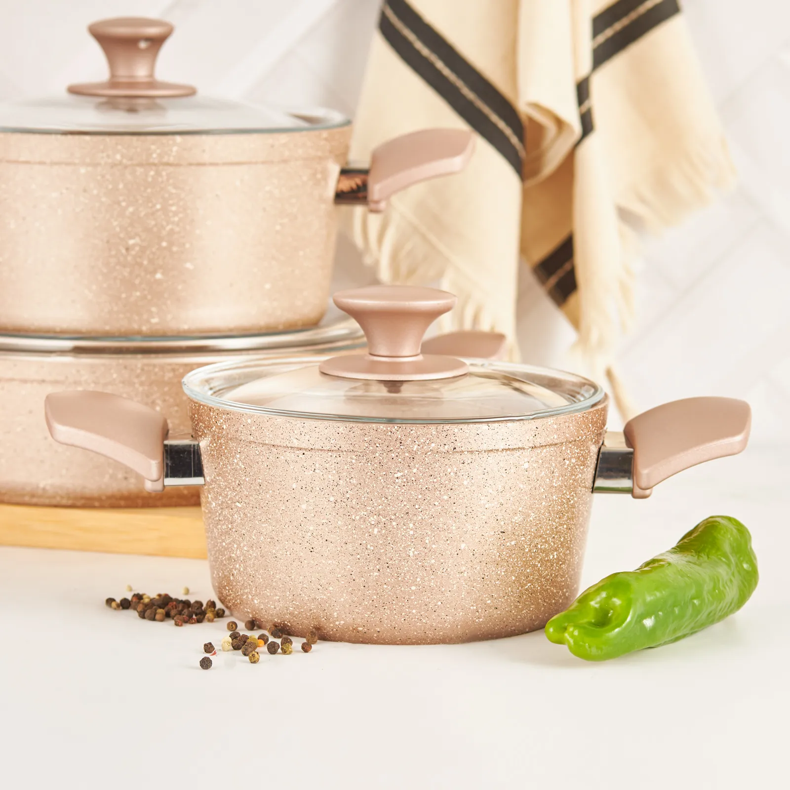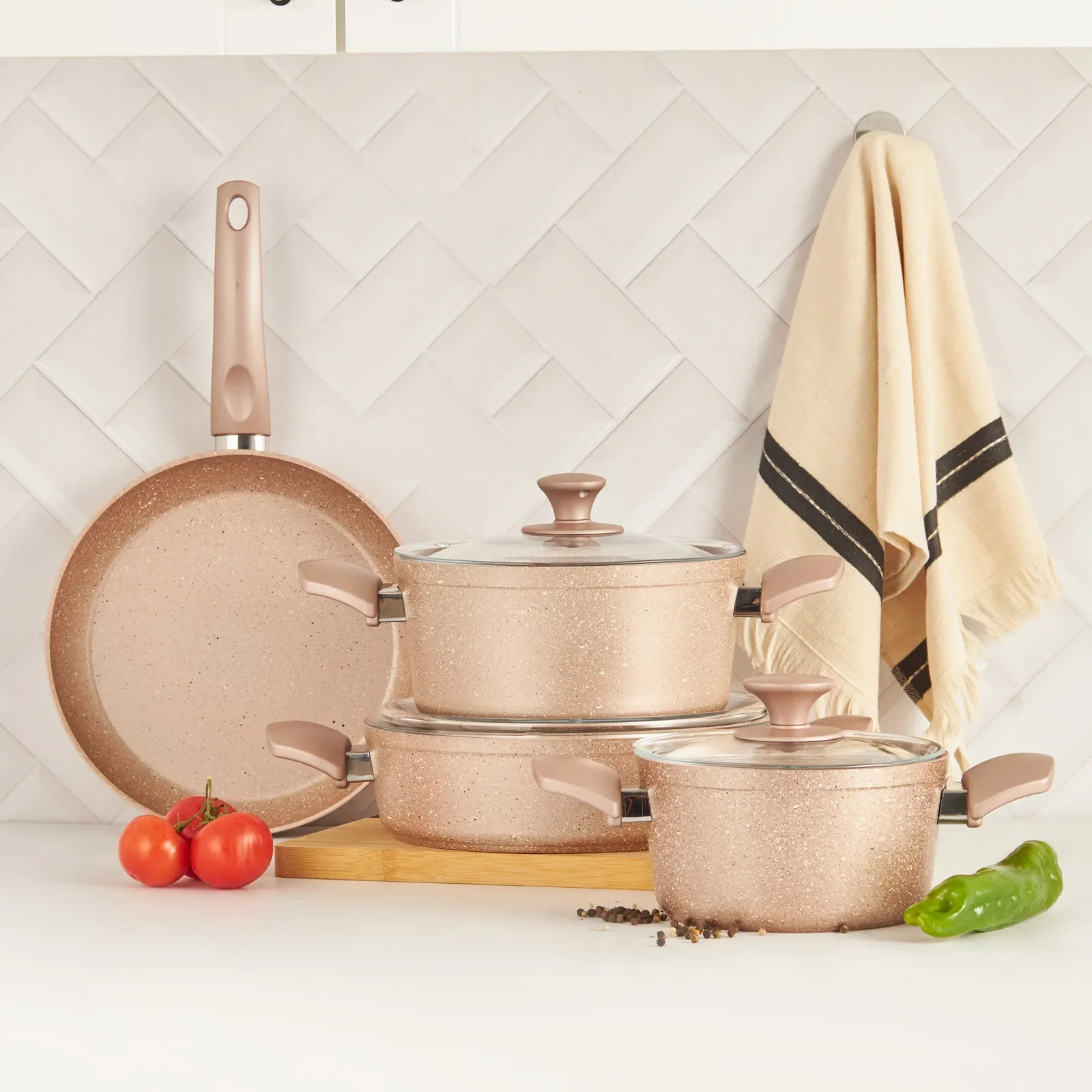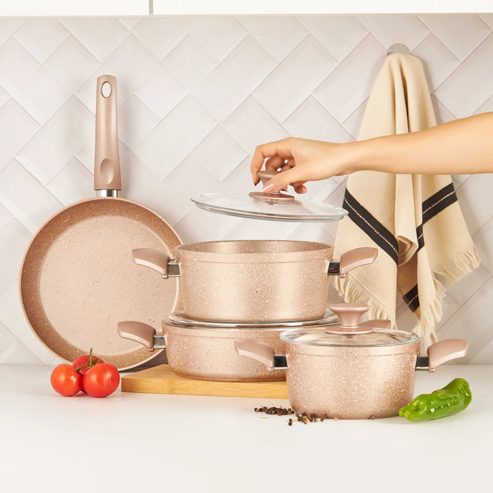 Karaca Biogranit Antique Rose V1 7-teiliges Kochgeschirr-Set