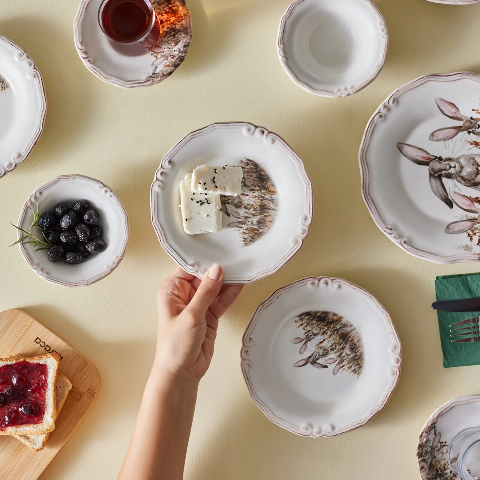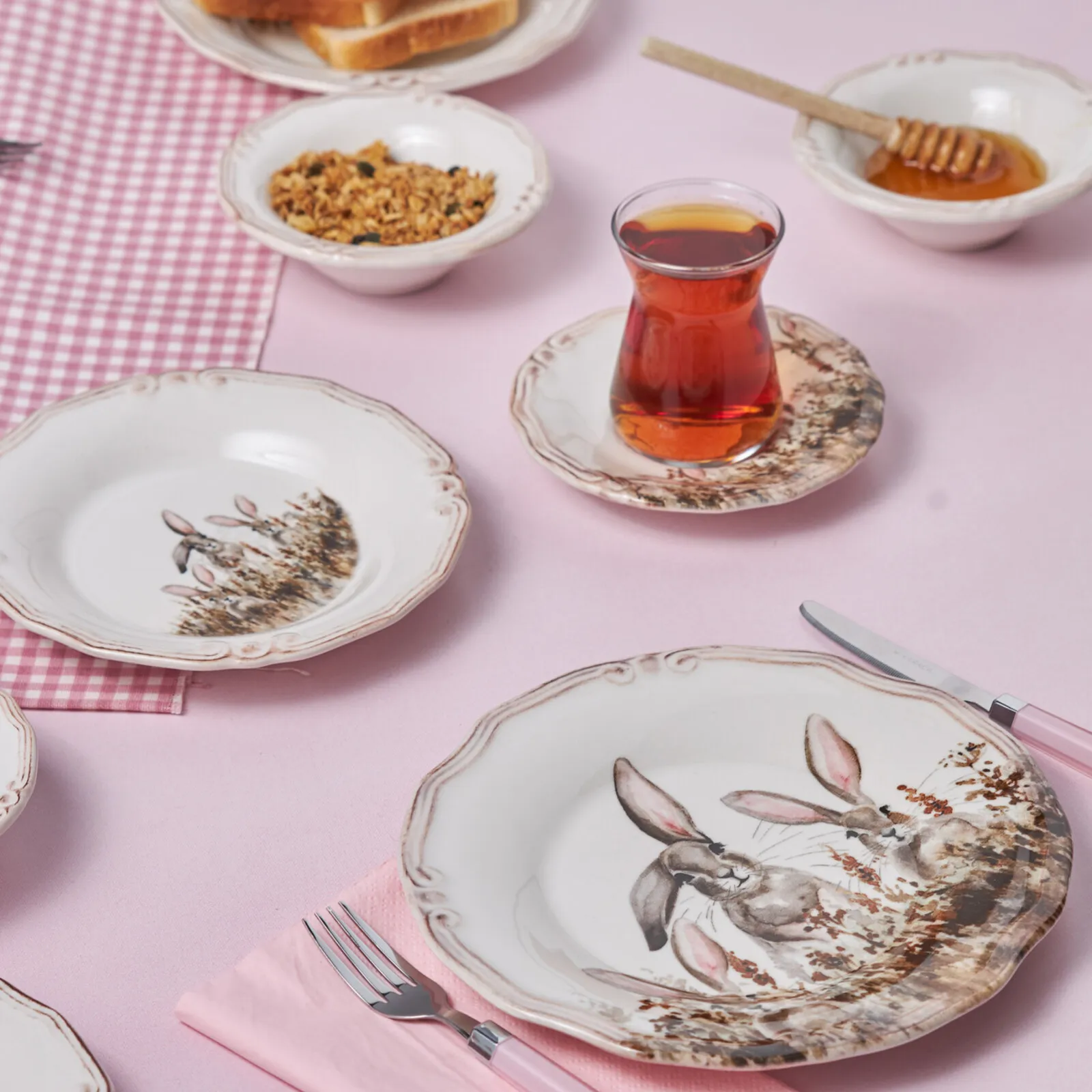 Karaca Bunny für 2 Personen Frühstücksset und Servierschalen, 12 Teilig