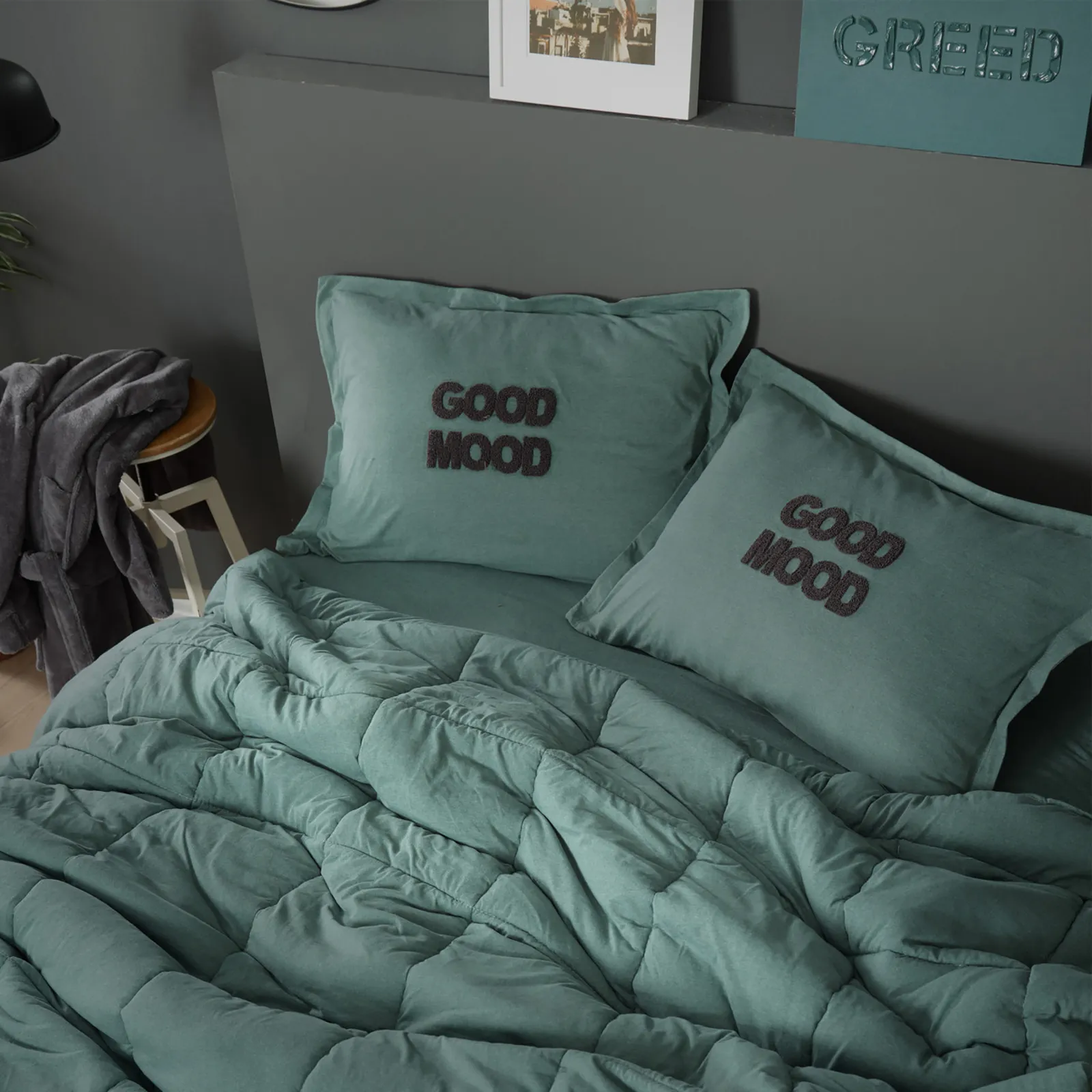 Karaca Home Motto Cotton Comfort-Set für zwei Personen Ölfarben