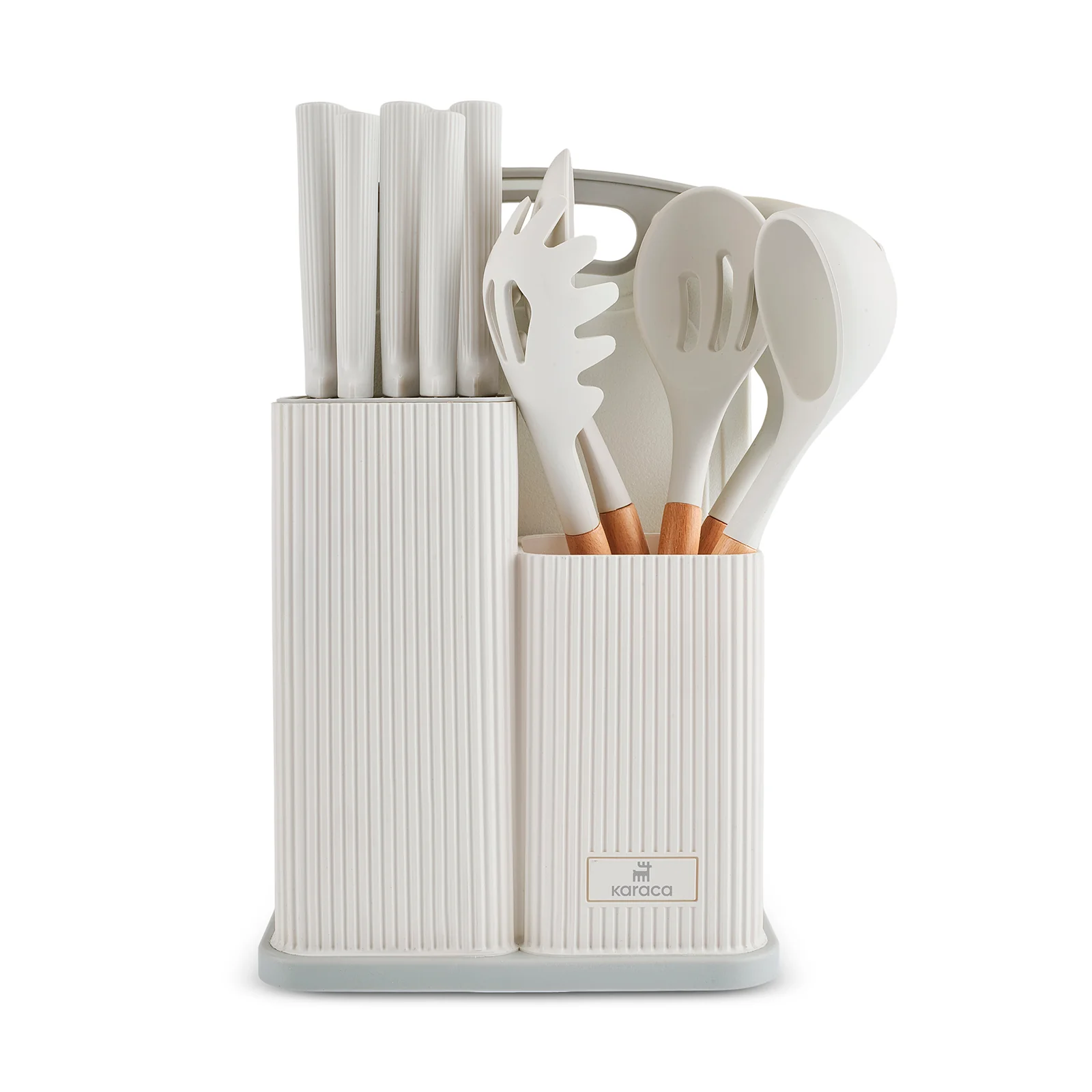 Karaca Massimo Messer, Servierbesteck und Schneidebrett-Set, Creme