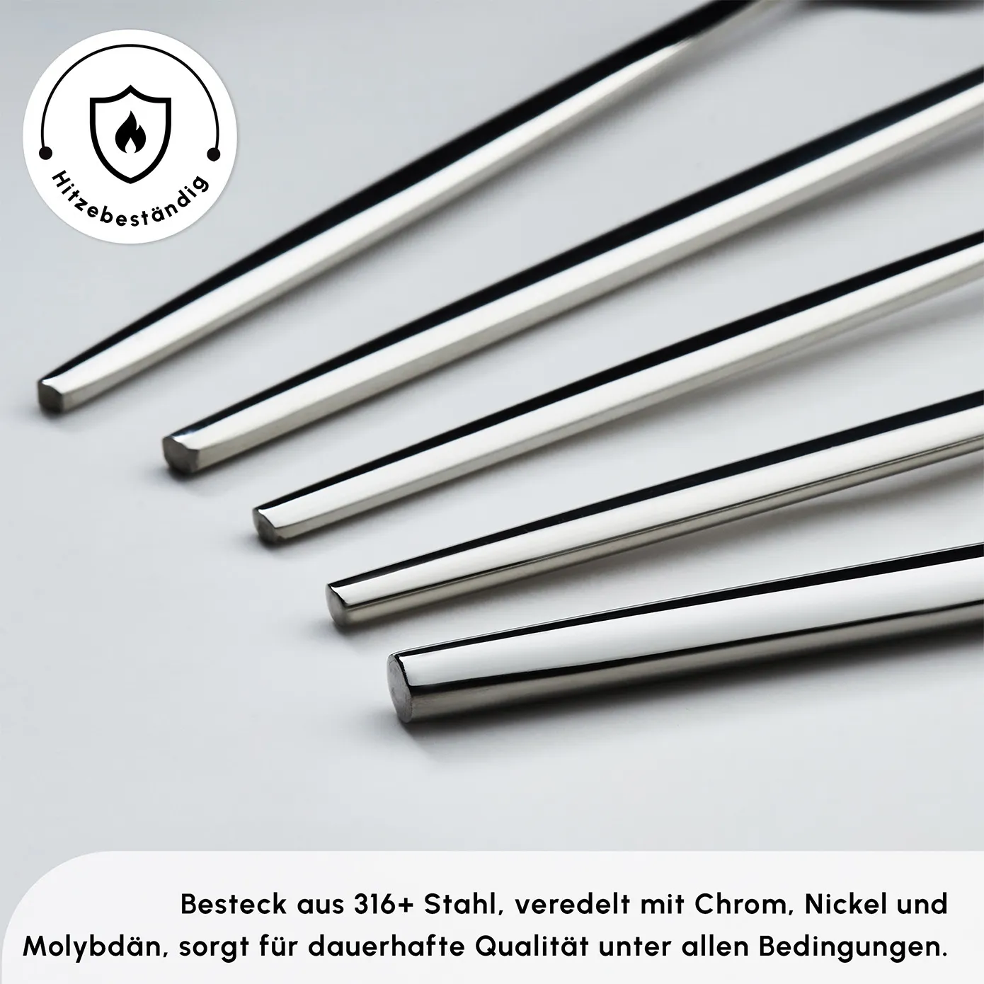 Das Molybdän, das den Karaca 316+ Bestecken, Löffeln und Messern ihre hohe Widerstandsfähigkeit verleiht, ist eine spezielle Zusammensetzung, die als Rost- und Korrosionsschutz in Schiffen, die die Ozeane überqueren, in der Luft- und Raumfahrt und ähnlichen Industrien wirkt. Hergestellt mit Molybdän, das in der Natur zu finden ist und somit einen gesunden Gebrauch bietet,sind die 316+ Gabel-, Löffel- und Messersets nur bei Karaca!