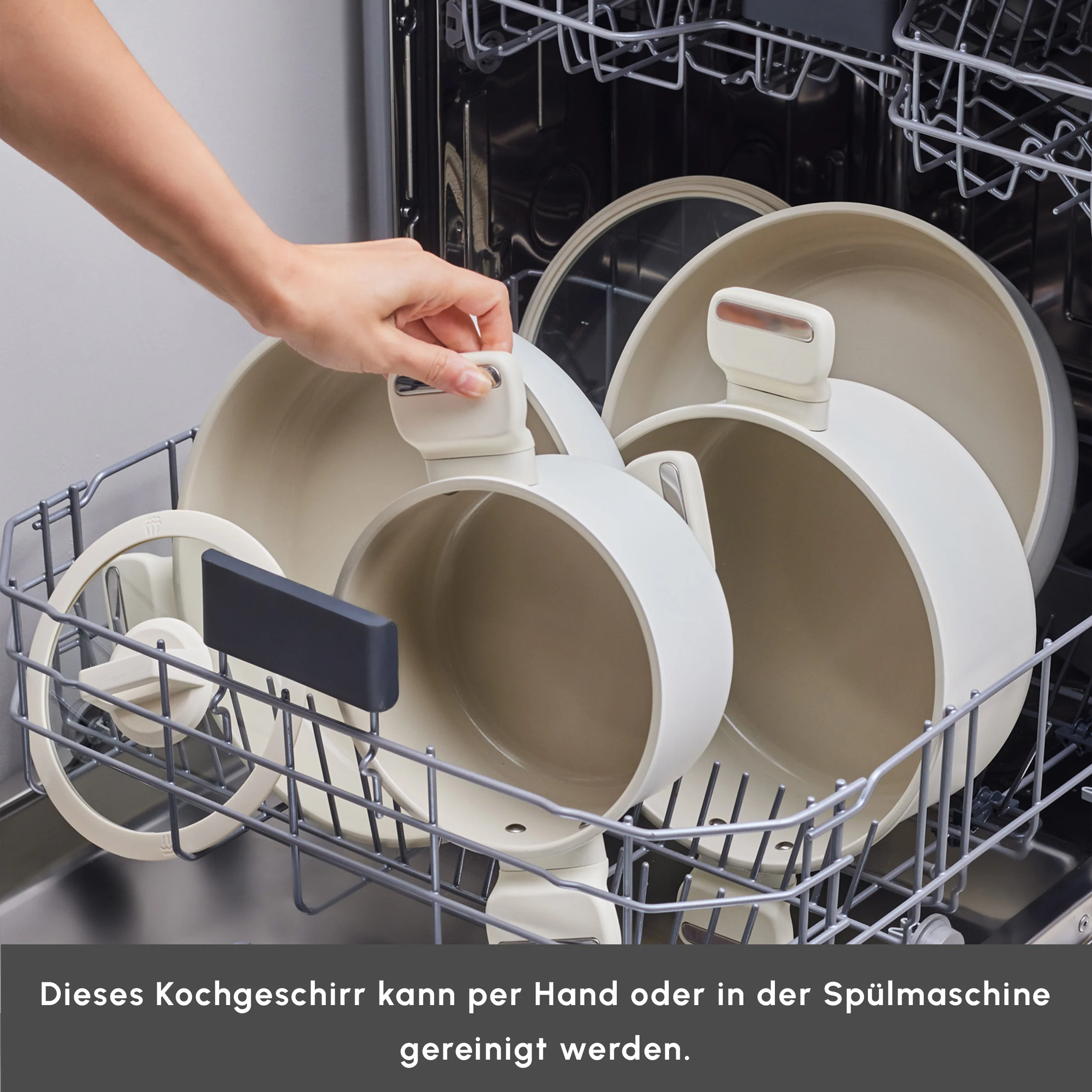 Sie können es auch in der Spülmaschine reinigen. Um die Antihafteigenschaften und die Kratzfestigkeit zu erhalten, empfehlen wir die Verwendung von