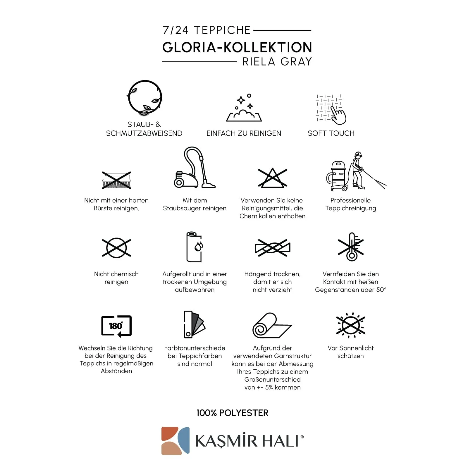 Schreibe die erste Bewertung für „Kasmir Teppich 7/24 Gloria Riela Grau 80×150 cm“