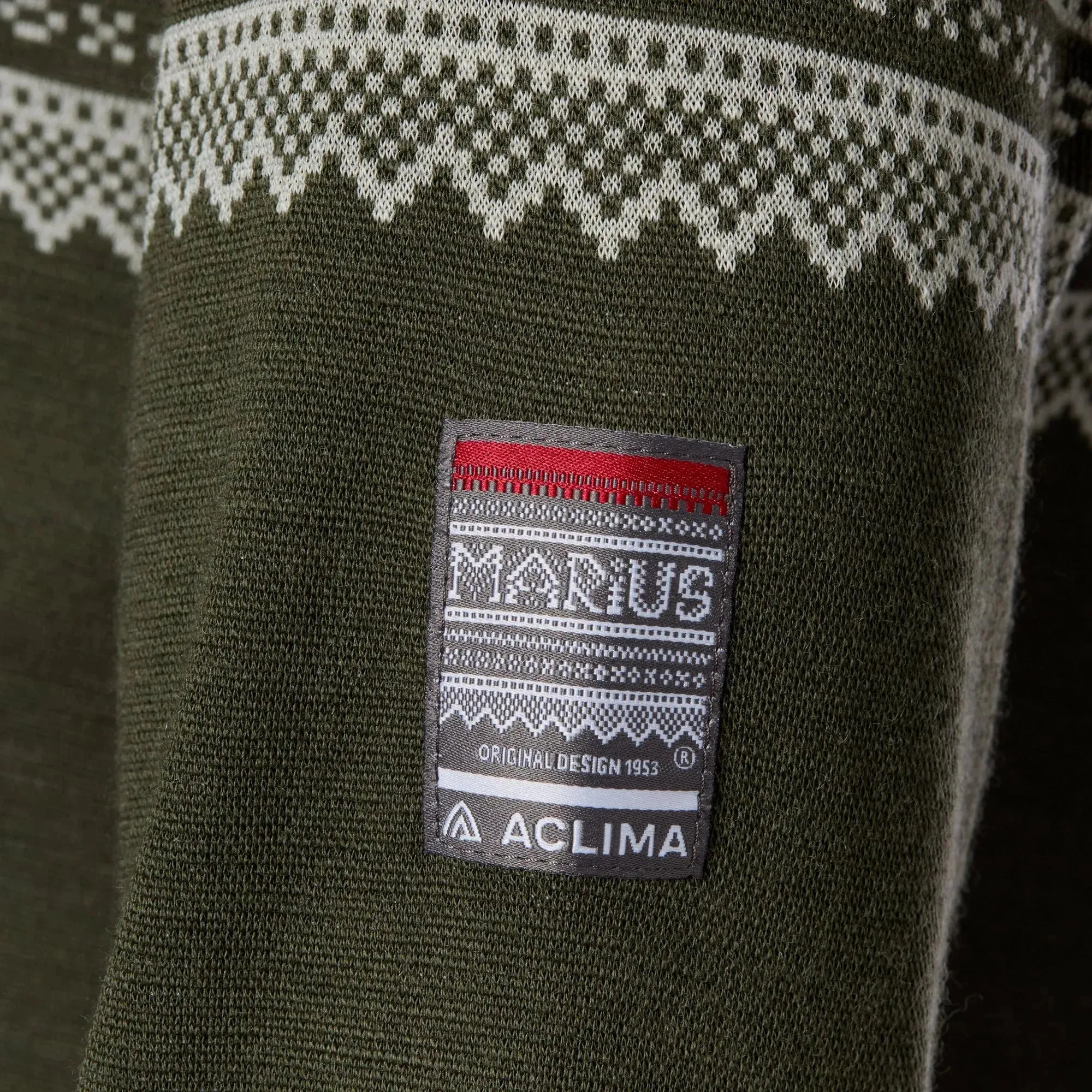 Der Aclima Pullover DesignWool Marius Mock Neck Zip überzeugt mit hohem Tragekomfort. Er besteht aus Jaquard-Strick. Außerdem schützen flache Nähte und ein Reißverschluss mit Kinn- und Windschutz vor Reibung.