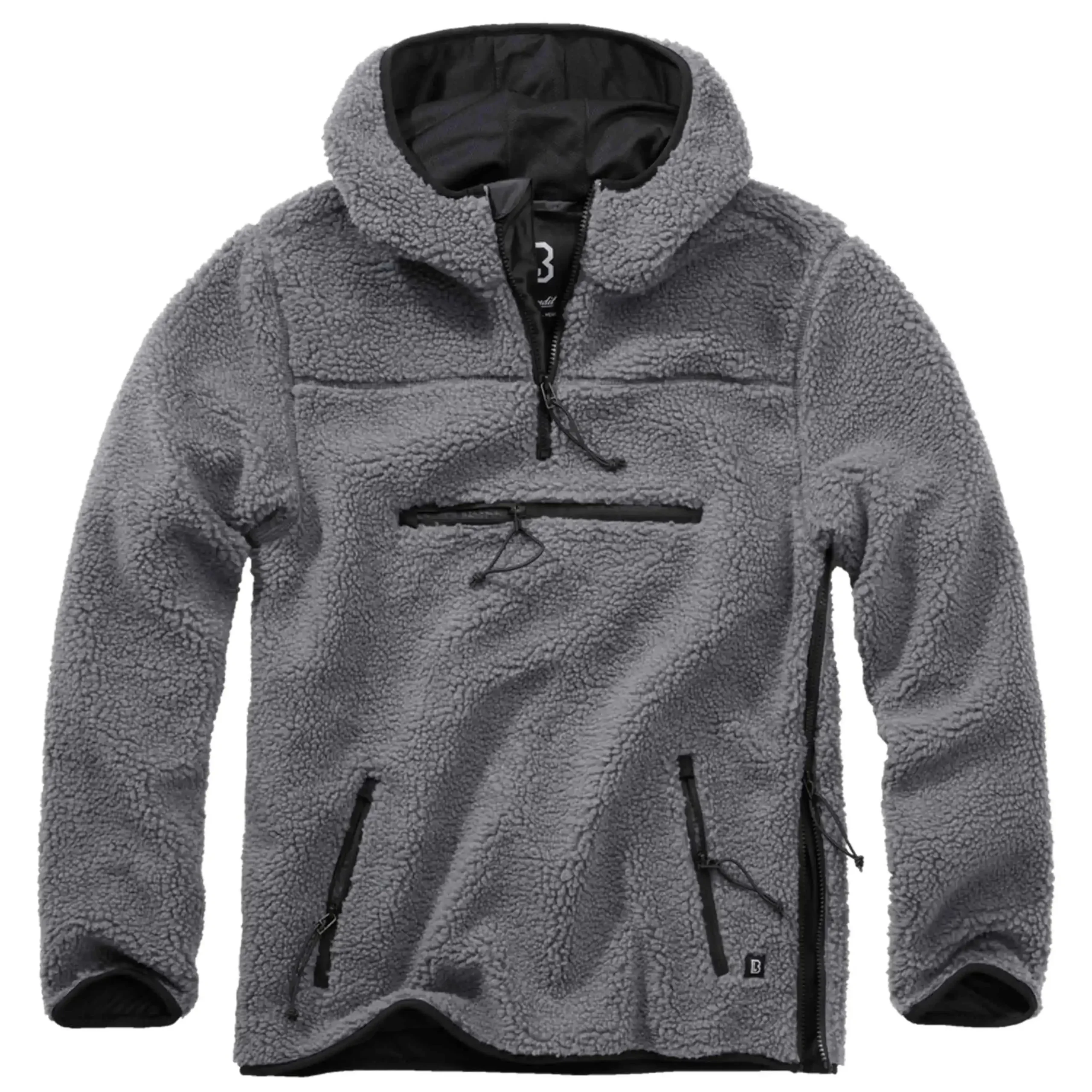 Der Brandit Pullover Teddyfleece Worker ist die perfekte Wahl für Ausflüge, Camping und Wanderungen. Dank des äußeren, warmen Teddyfleece und des atmungsaktiven Innenfutters kombiniert er eine hohe Wärmeleistung und ein angenehmes Tragegefühl. Eine große Brusttasche und zwei seitliche Einschubtaschen mit Reverse-Reißverschlüssen gewährleisten, dass Sie kleinere Ausrüstung problemlos verstauen können. Die geräumige Kapuze schützt Sie ebenso wie die Kinn- und Windschutzleiste vor kaltem Klima. Ein hochwertiger Seitenreißverschluss bewirkt, dass Sie das Oberteil schnell aus- und anziehen können.