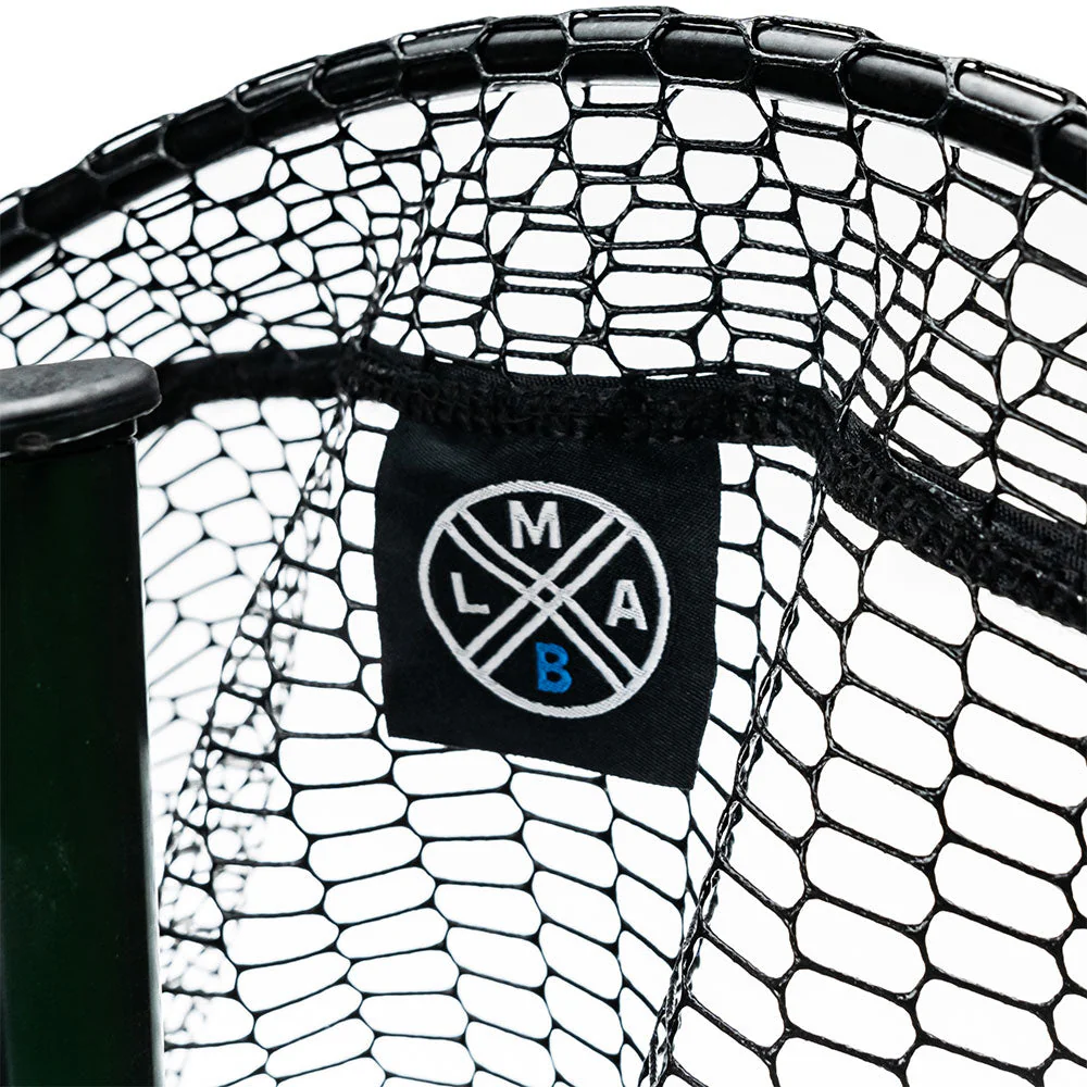 Das LMAB Quick Out Landing Net weiß noch mit einer weiteren Besonderheit zu überzeugen. So ist der Kescherkopf vorne abgesenkt. Dieser leichte Knick nach unten vereinfacht das Keschern und reduziert in Verbindung mit dem gummierten Netzmaterial das Risiko, dass sich der Haken vom Kunstköder im Netz verhakt. Insbesondere bei Hardbaits mit mehreren Drillingen kann das schnell mal passieren und dann reicht ein letztes Kopfschütteln aus, dass sich der Fisch vom Haken befreit und weg ist. Dies wird mit dem Quick Out Landing Net deutlich seltener passieren, dank des cleveren Designs. Das gummierte Netz hat aber auch die weiteren Vorteile, dass es schonender für die Schleimhaut der Fische ist und sich deutlich einfacher reinigen lässt.