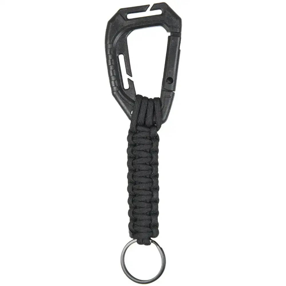 Der praktische Mil-Tec Schlüsselanhänger Fallschirmleine mit Karabiner lässt sich an zwei Seiten an Molleschlaufen befestigen. Dank der praktischen Fallschirmleine bist Du für zahlreiche Situationen bestens gewappnet.
