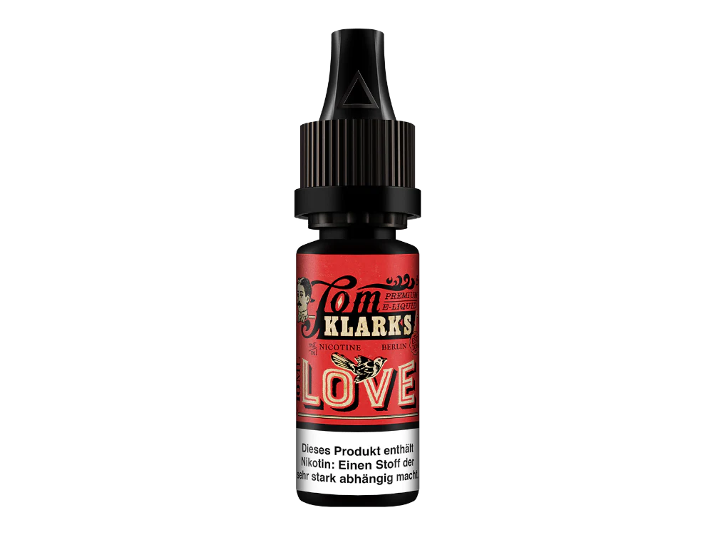 Das 10ml Liquid namens „Love“ kommt aus dem Hause Tom Klarks. Beim Dampfen entwickelt das Liquid die Aromen von Schokolade, Beeren und Weintrauben und ist in folgenden fünf Nikotinstärken erhältlich: 0mg/ml, 3mg/ml, 6mg/ml, 12mg/ml, 18mg/ml