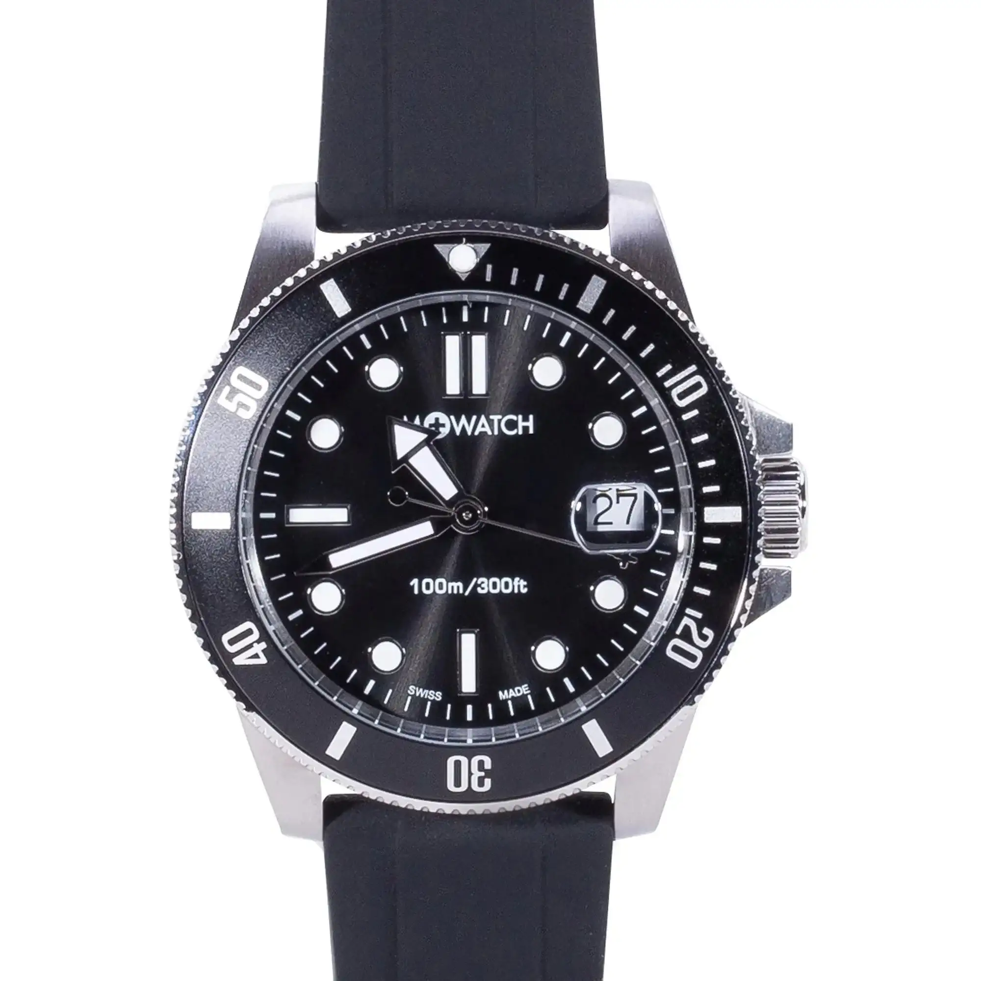 Mit der M+WATCH Armbanduhr Mondaine Aqua Steel 41 bist Du bei Deinem nächsten Wasser-Abenteuer perfekt ausgestattet. Die Analoguhr ist geeignet für Tauchgänge bis zu 100 m Tiefe aus. Sie ist ausgestattet mit einer einseitig drehbaren Lünette, einem verschraubter Gehäuseboden und einer Krone mit Dichtungsring. Außerdem verfügt sie über eine Stunden-, Minuten-, Sekunden- und Datumsanzeige. Dabei sind Indices und Zahlen beleuchtet.